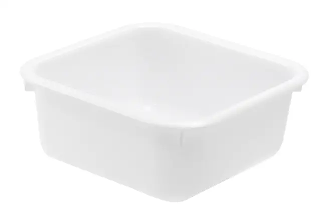 Cuvette carrée ou ronde en polyéthylène basse densité (LDPE) blanc.