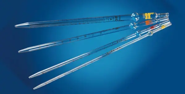 • Gamme complète de pipettes graduées à écoulement total • Zéro en haut ou zéro en bas • Comportent une boule de sécurité • Repérage du volume aisé grâce au code couleur • Classe A • Conformes aux normes ISO 835 et ISO 648 • Sérigraphie indélébile de couleur bleue • En verre sodocalcique afin d'assurer une parfaite mouillabilité
