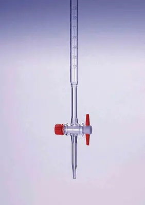 • Tube de burette avec bande photophore “Schellbach” verticale blanche et ruban bleu central