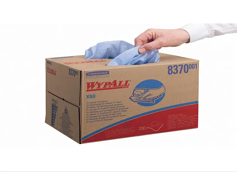 002978 · Essuyeur Wypall* X60 bleu clair 31 x 42 cm en boîte distributrice Kimberly Clark - paquet de 200 formats
