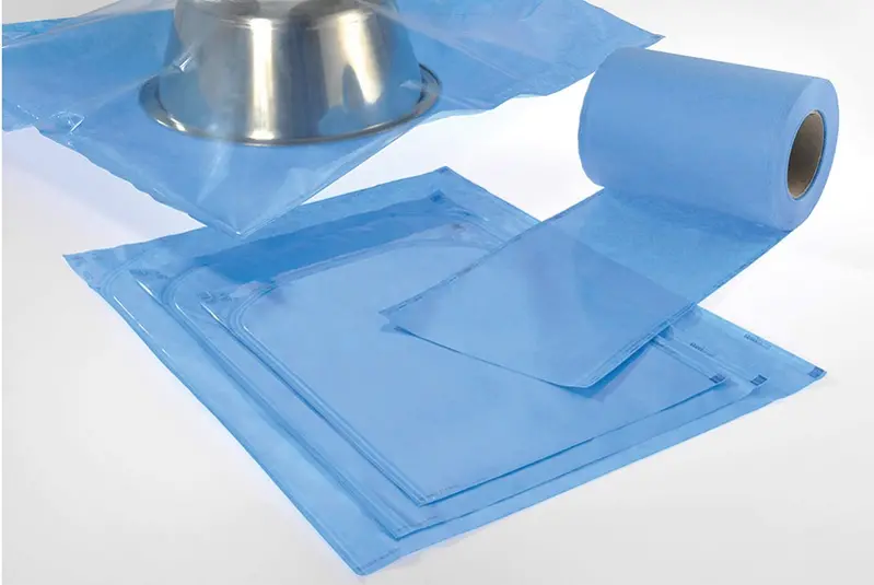 • Conformes à la norme EN ISO 11607 et DIN 868-5 • En non-tissé 60 g/m² et film plastique : souplesse du non-tissé avec une haute perméabilité à l'air et à la vapeur permet le traitement de grands volumes • Pour la stérilisation à la vapeur et aux gaz • 3 indicateurs imprimés hors de la zone de remplissage : vapeur, oxyde d'éthylène, formaldéhyde