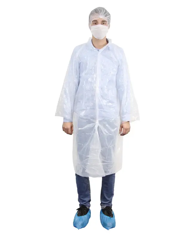 • 1 blouse blanche en polyéthylène 20 µm fermeture par boutons pressions