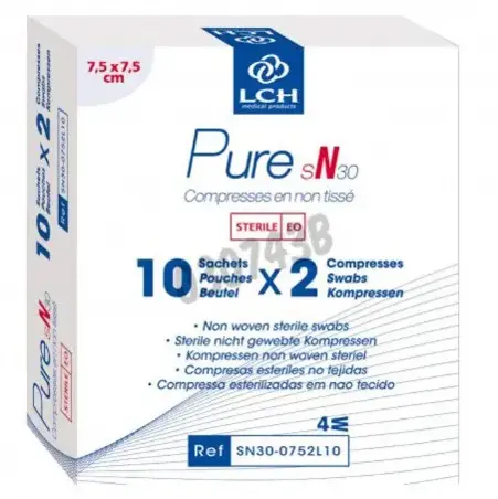 030747B · Compresse stérile 7,5 x 7,5 cm - en sachet de 5 compresses