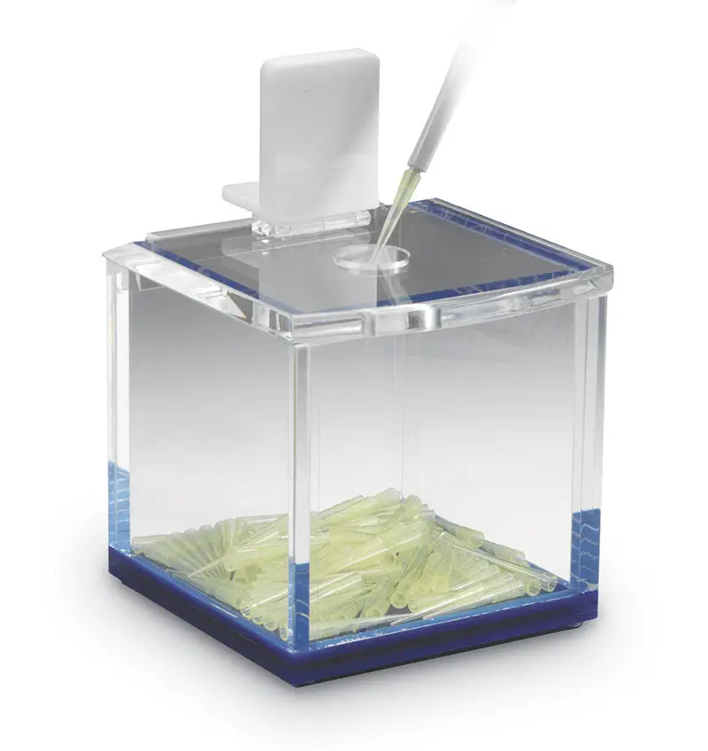 Boîtes en acrylique pour la récupération de pointes radioactives.