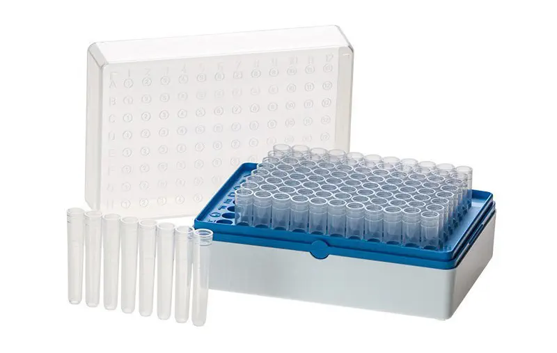 Tubes en polypropylène de 1,1 ml pour le stockage et le transfert. Individuels ou en barrettes de 8, en vrac ou sur rack de 96 à format microplaque.