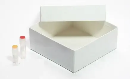 Boîte de congélation en carton hydrophobe pour 81 cryotubes. L x l : 133 x 133 mm avec couvercle. Les séparateurs sont à commander séparément.