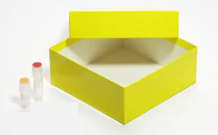 039543 · Boîte de congélation 133 x 133 mm en carton de couleur jaune pour 81 cryotubes 2 ml