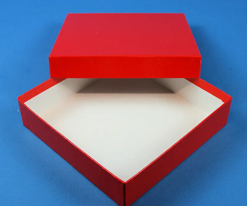 Boîte en carton hydrophobe recouvert d'un film plastifié de couleur parfaitement imperméable.