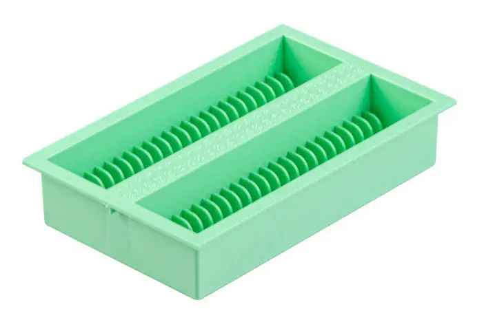 Portoir en polystyrène haute résistance pour le stockage ou le séchage de lames de microscopies placées verticalement.