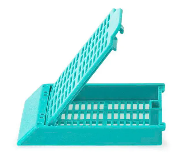 Cassettes d'inclusion résistant à la plupart des solvants utilisés en histologie, pour le stockage optimal des échantillons. Les Histosettes Biopsie présentent des ouvertures plus petites que les Histosettes standard et sont plus particulièrement conçues pour recevoir des échantillons de biopsie pendant les oopérations d'inclusion, de préparation et d'entreposage.