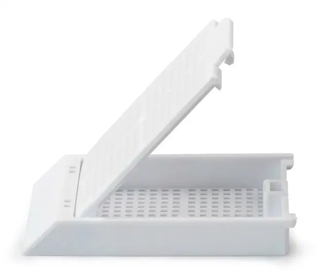 Cassettes d'inclusion résistant à la plupart des solvants utilisés en histologie, pour le stockage optimal des échantillons. Les Histosettes Biopsie présentent des ouvertures plus petites que les Histosettes standard et sont plus particulièrement conçues pour recevoir des échantillons de biopsie pendant les oopérations d'inclusion, de préparation et d'entreposage.