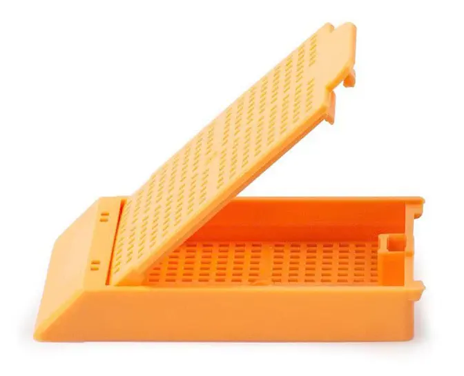 Cassettes d'inclusion résistant à la plupart des solvants utilisés en histologie, pour le stockage optimal des échantillons. Les Histosettes Biopsie présentent des ouvertures plus petites que les Histosettes standard et sont plus particulièrement conçues pour recevoir des échantillons de biopsie pendant les oopérations d'inclusion, de préparation et d'entreposage.