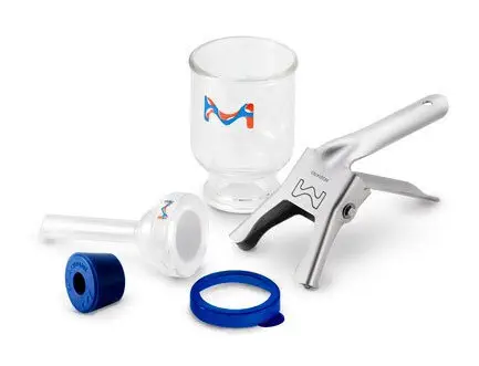 MatériauGrille support filtre : verre fritté / Pince d'assemblage : aluminium anodisé / Bouchon : silicone