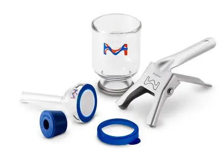 • Grille support en verre fritté + rodages recouverts de PTFE : pour les analyses bactériologiques qui nécessitent l'autoclavage du support avec le filtre en place
