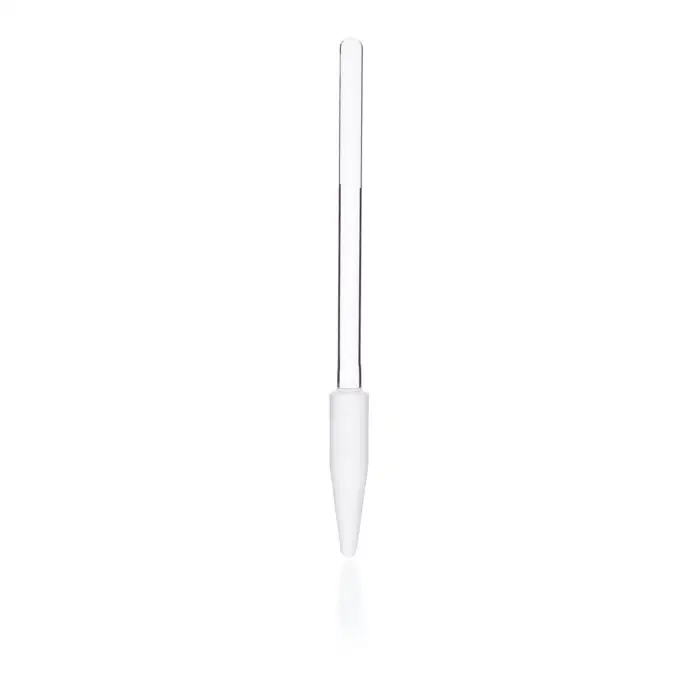 • cylindre verre à capuchon vissant et joint PTFE, avec piston PTFE strié sur tige acier : très forte capacité de broyage (E).
