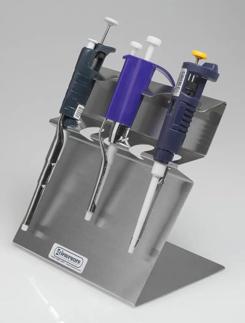 Robuste, universel, ce portoir incliné accepte 5 micropipettes de toutes marques. Acier inox. L x l x h (mm) : 229 x 146 x 197.