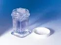 048911 · Jarre de coloration avec couverle PP blanc (dimensions int. L x l x h = 26 x 26 x 90 mm)