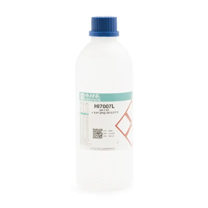 Les solutions tampons HANNA Instruments sont fabriquées avec des matériaux de référence certifiés NIST et standardisées avec un pH-mètre étalonné selon un standard primaire également rattaché à la norme NIST.