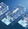 Chambre de culture LAB-TEK II sur lamelle, non séparable, à 1, 2, 4 ou 8 compartiments fixés sur une lamelle en verre borosilicaté 25 x 56 mm. La finesse et la fragilité de la lamelle ne permettent pas de détacher la chambre. Elle comporte un couvercle amovible et est stérilisée aux rayons gamma. Les chambres sont présentées sur un plateau que l'on peut conserver dans l'incubateur. Intérêt : la lamelle en verre borosilicaté facilite les observations au microscope inversé.