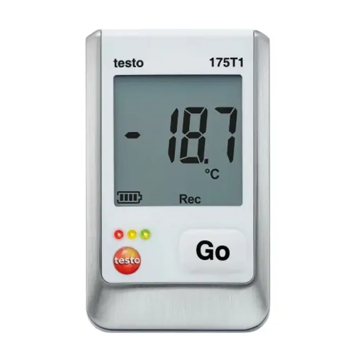 Les sets Testo comprennent l'enregistreur, l'interface USB pour programmation et transfert des valeurs vers un PC, un support mural, les piles et le certificat de conformité.
