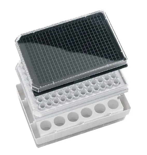 058065 · Plaque Krystal 96 puits à fond en verre coloris noir