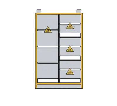 • Étagères de rétention réglables en hauteur au pas de 32 mm
