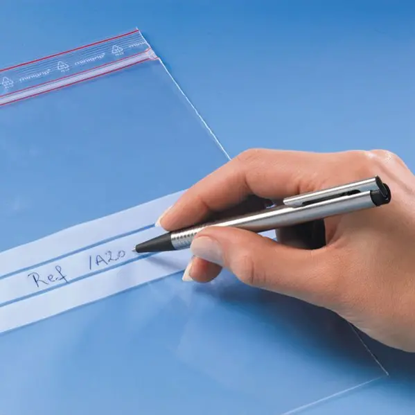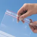 Sachets en polyéthylène avec liseré rouge sur la fermeture à glissière.