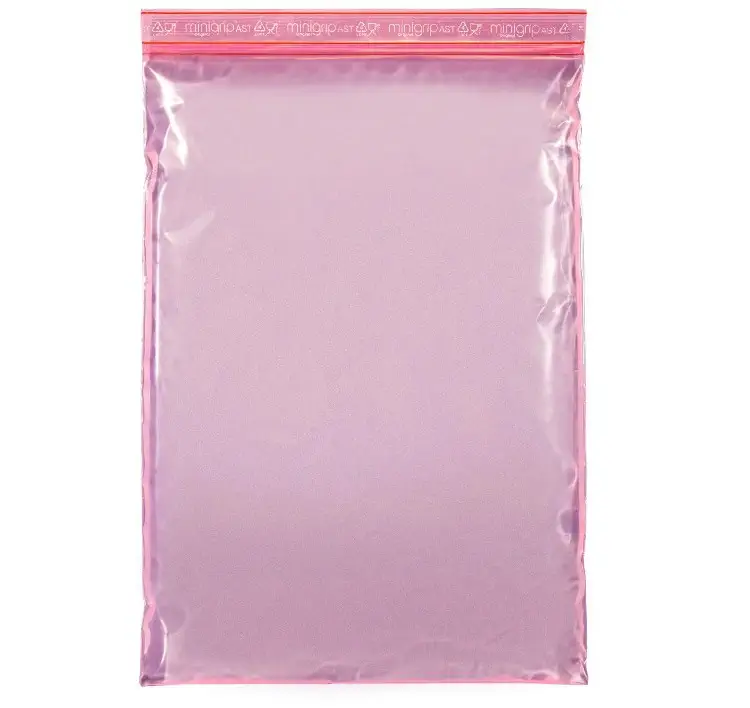 Sachets en polyéthylène avec liseré rouge sur la fermeture à glissière.