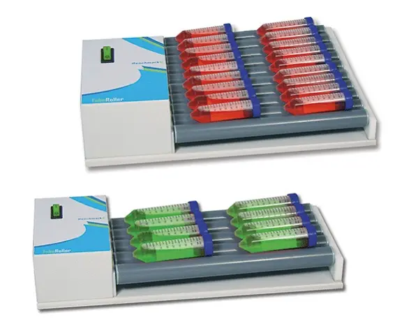 Agitateurs pour tubes à mouvements simultanés : rotation des rouleaux et oscillation de la plate-forme.