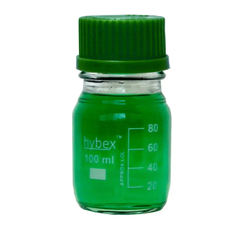 062710 · Bouteille Hybex en verre borosilicaté col GL45 et bouchon coloré - 100 ml - bouchon vert