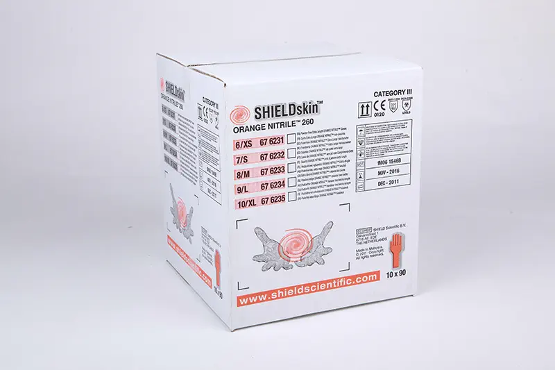 065701 · Gant SHIELDskin Orange Nitrile 260 mm taille S/7 Shield Scientific