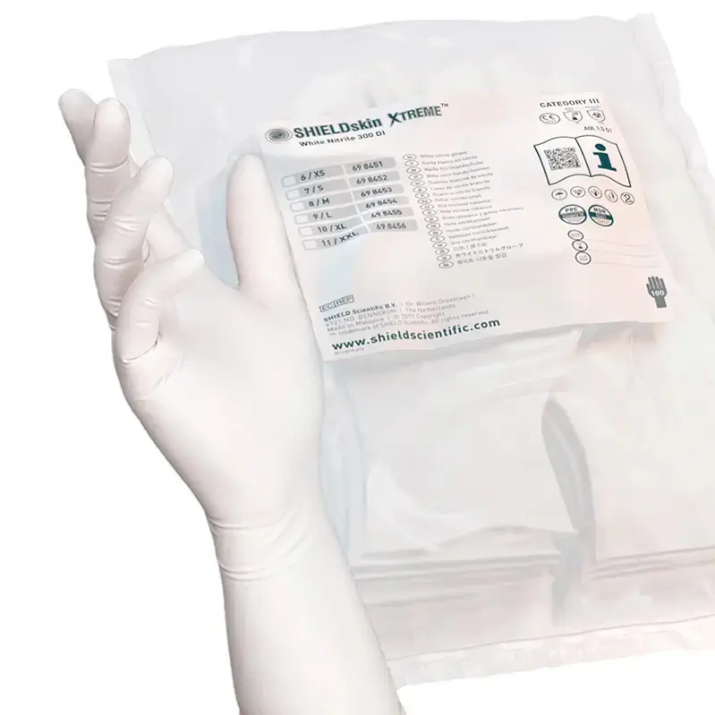 • Epaisseurs (mm) : doigts 0,15, paume : 0,13, manchette : 0,10