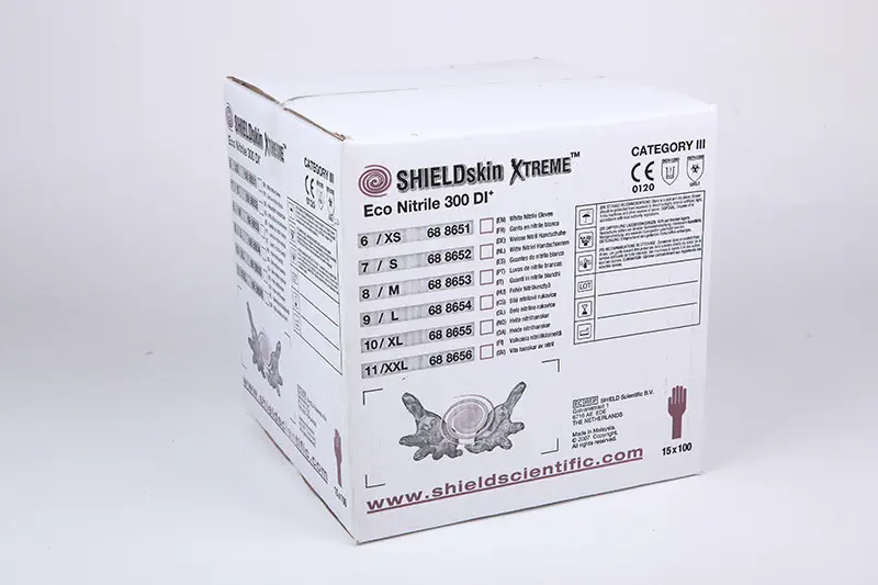 Emballage : 100 gants/sachet PE / 15 sachets PE/carton