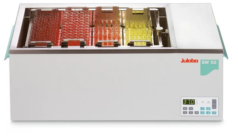 Pour le modèle SW23 : la stabilité à haute température est obtenue en partie grâce à l'agitation homogène du liquide du bain. Sécurité de niveau assurée par un flotteur qui coupe toutes les fonctions (en plus de la sécurité de surchauffe ajustable)