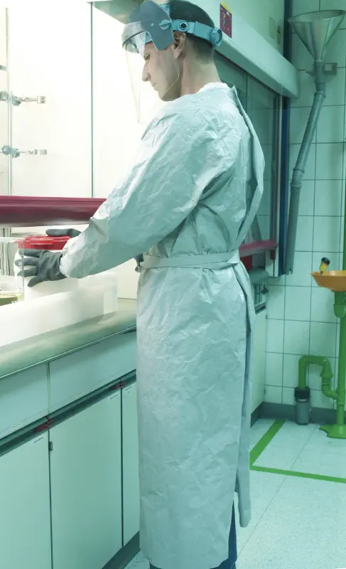 • En TYCHEM® (TYVEK® recouvert de matériau barrière polymérique) offrant une bonne protection contre la perméation chimique à une large gamme de produits chimiques inorganiques et de risques biologiques même pressurisés