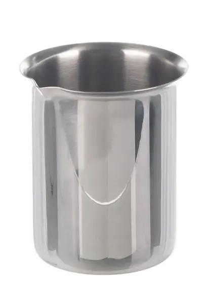 076283 · Bécher en acier inox 100 ml avec bord et bec verseur