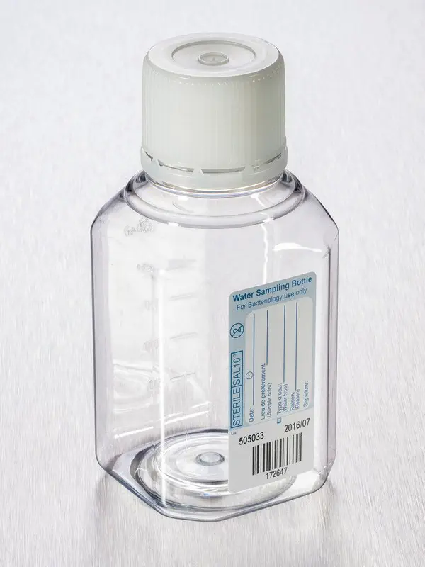 Flacons à prélèvement carrés avec thiosulfate de sodium.