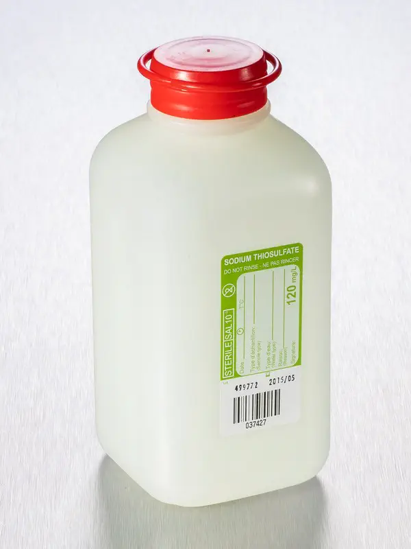 Flacons à prélèvement carrés avec thiosulfate de sodium.