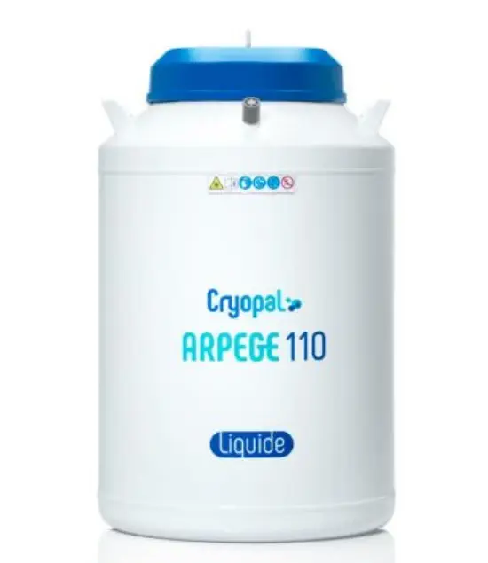Récipient de moyenne capacité pour la cryoconservation de produits biologiques de petite taille.