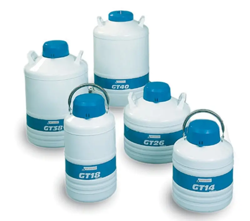 082238 · Cryoconservateur avec canister plastique GT9 Air liquide 1 étagère de gobelets