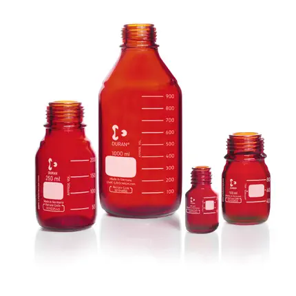 Les flacons en verre borosilicaté Schott Duran se distinguent par un coefficient de dilatation très faible, une excellente résistance aux chocs thermiques et aux agents chimiques.