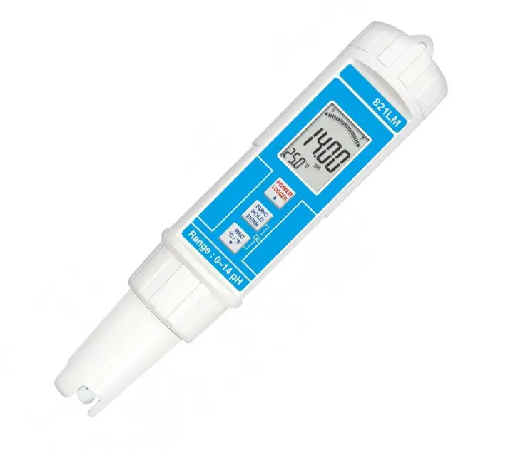 PH-mètre “stylo” anti-chocs et étanche. Convient aux domaines de la pisciculture, aquaculture ou pour les analyses de l'eau. Livré avec solutions d'étalonnage pH 4 et 7, à étalonner à chaque mesure.
