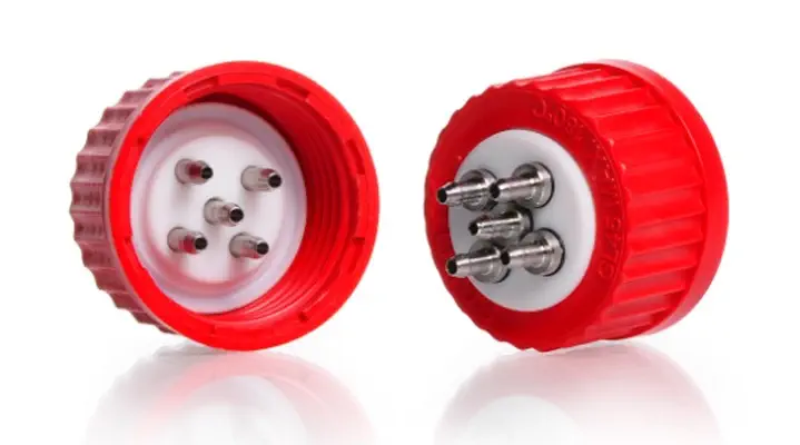 096366 · Capuchon de transfert DURAN multiports inox GL45 - 5 tubulures - diamètre tubulure 3,2 mm