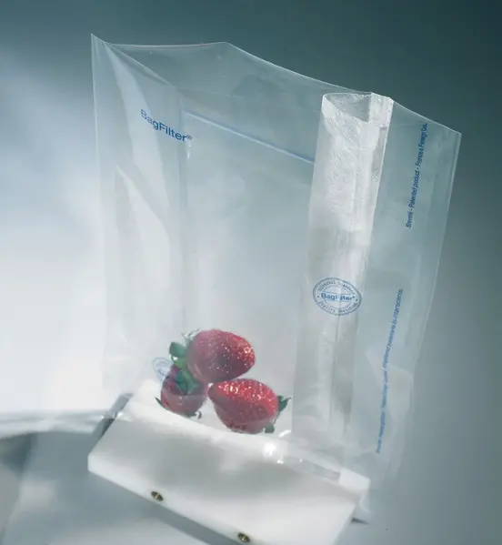 Ces sachets sont équipés d'un filtre latéral permettant de recueillir la solution à analyser débarrassée des fibres, soit par pipetage à l'aide de la BagPipet® et des pipettes paille, soit par simple versement. Ces sachets sont préconisés pour l'analyse des produits carnés et de la charcuterie.