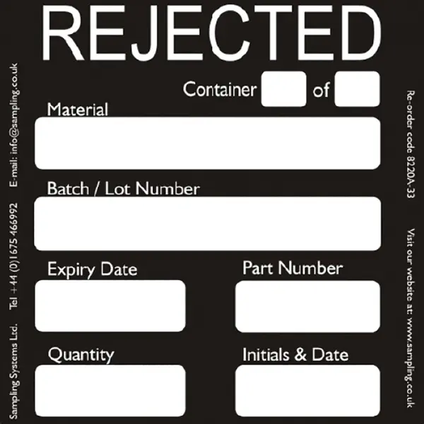 114162 · Etiquette avec colle ultra adhésive noire "Rejected" - 95 x 95 mm