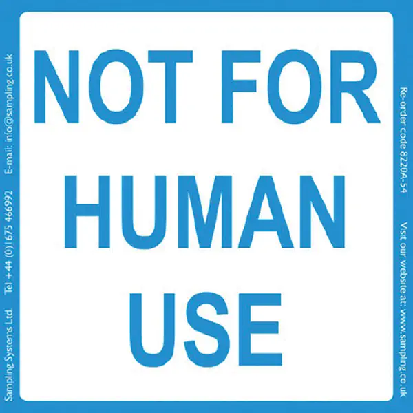 114168 · Etiquette avec colle ultra adhésive blanche contour bleu "Not for human use" - 95 x 95 mm