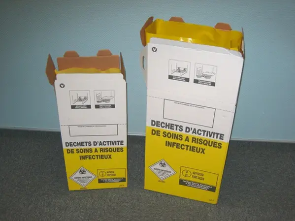 • For soft DASRI • Self-opening bottom • Lined internally with a 55 µm thick yellow PE bag • Two carrying handles • Reinforced corners for added strength • Intuitive locking system • Stackable • Approval according to NFX 30-507: 2018 et UN 4G/Y15/S/20