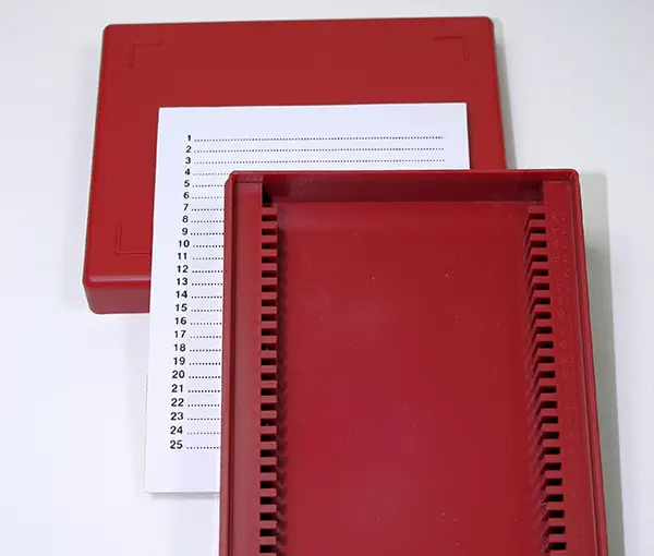 139531 · Boîte en polystyrène pour 25 lames de microscopie coloris rouge