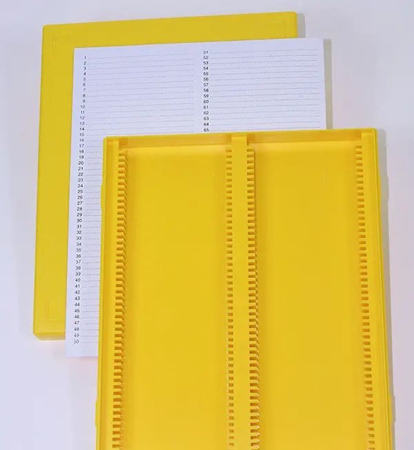 139536 · Boîte en polystyrène pour 50 lames de microscopie coloris jaune
