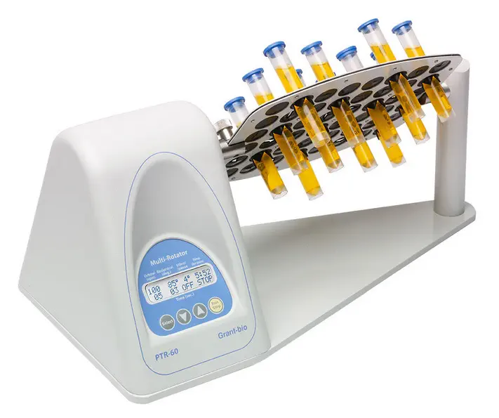 Utilisables en fonction continue ou gérés par le timeur. Chaque mode se relie à un autre rendant l'appareil flexible à tous les modes combinés. Le modèle PTR-35 est livré avec une plate-forme pour 26 tubes de 1,5 à 15 ml (ø 15 mm max), le modèle PTR-60 livré avec une plate-forme pour 48 microtubes.